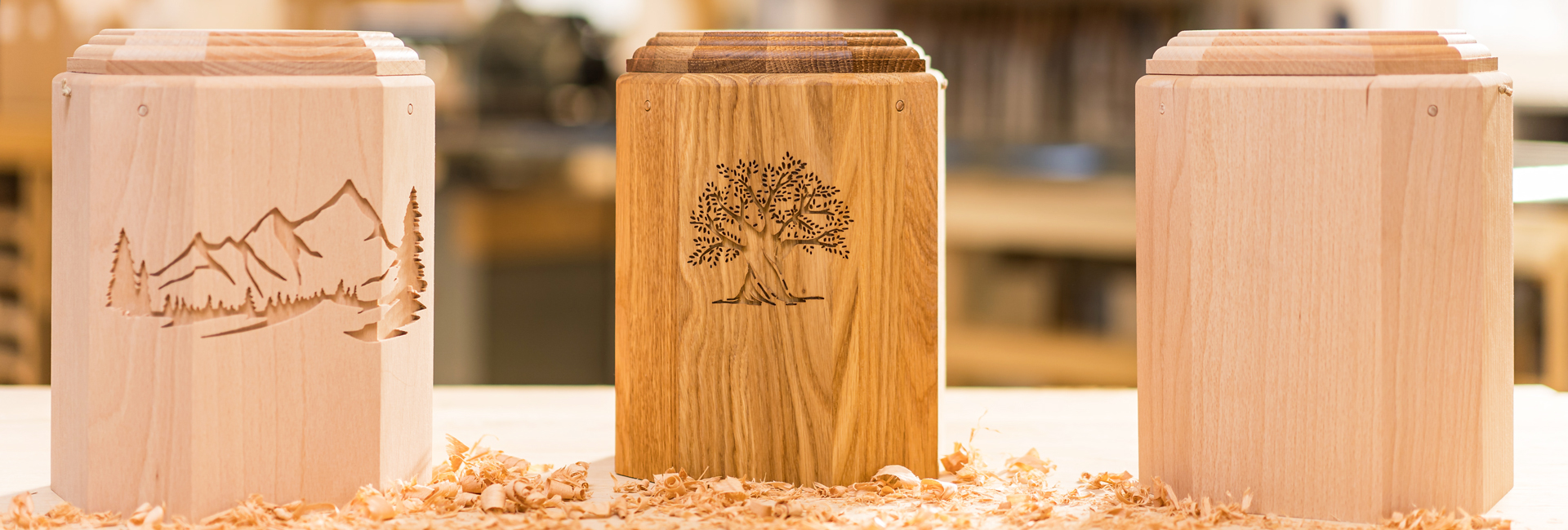 Jede Urne ist ein Unikat, welche mit viel Liebe zum Detail von unseren qualifizierten Tischlern hergestellt wird. In besonderer Verantwortung für biologische Abbaubarkeit werden nur komplett naturbelassene Materialien eingesetzt. Selbst bei handbemalten Urnen wird darauf geachtet, ausschließlich nur mit natürlichen Pflanzen- und Erdfarben zu arbeiten.